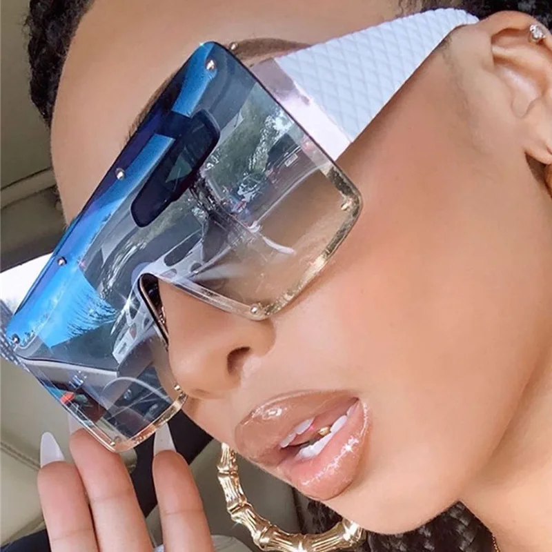 Солнцезащитные очки оверсайз женские, брендовые дизайнерские зеркал...