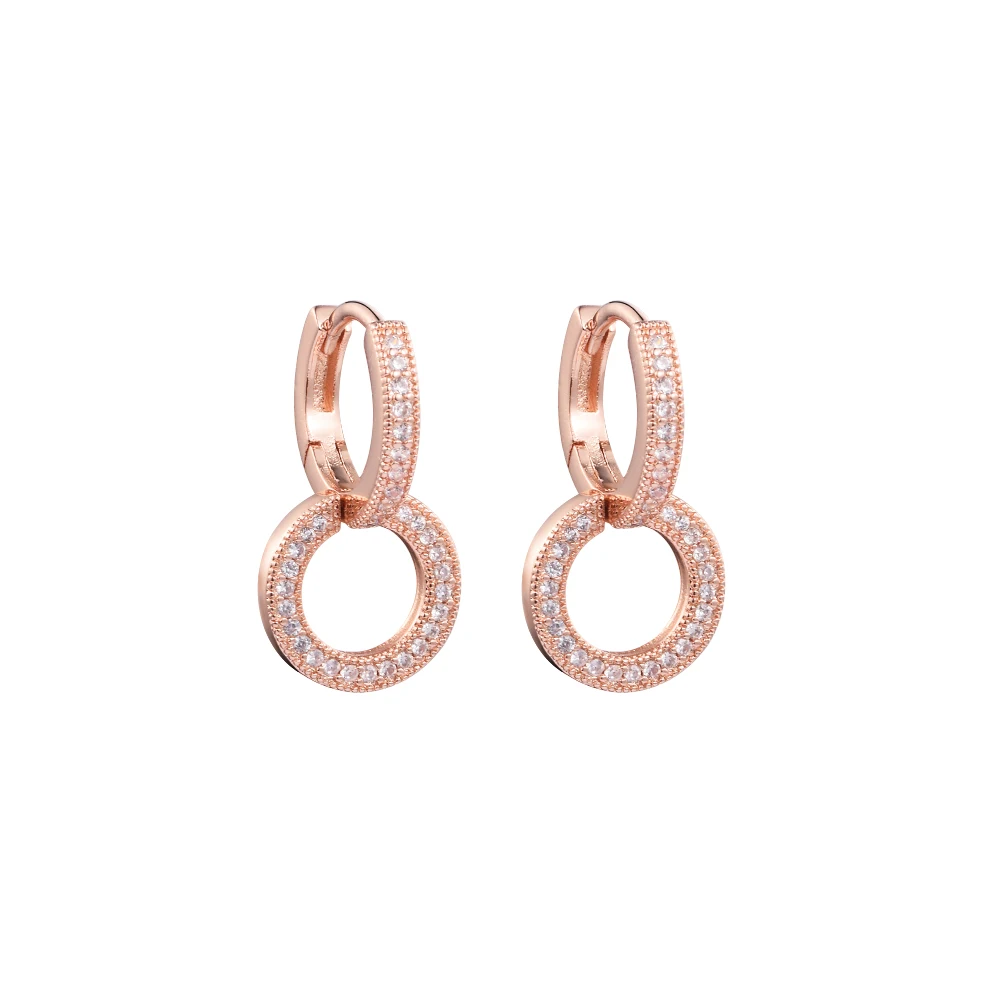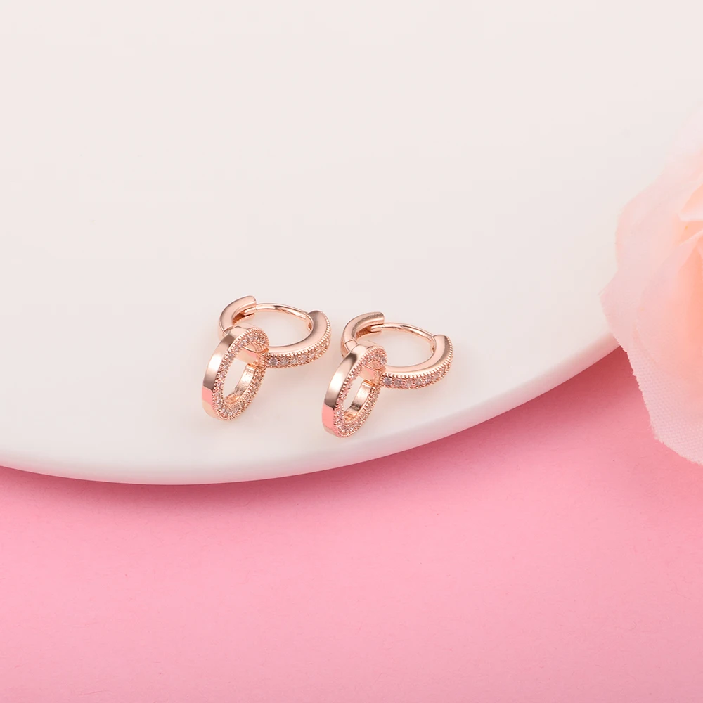 Сверкающие Двойные серьги-кольца, прозрачные CZ, розовое золото, бе...