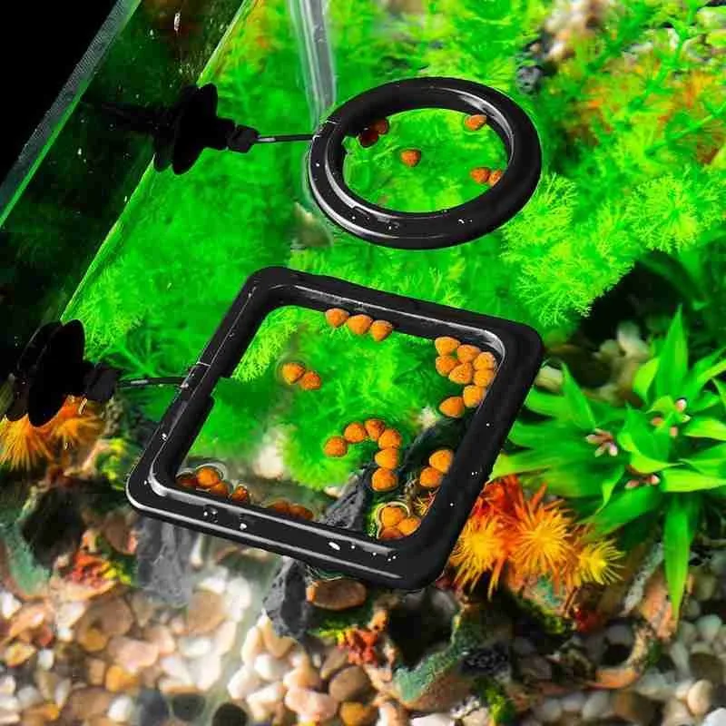 Аквариумное кольцо для кормления с присоской, станция для аквариума, плавающий поднос для еды, водное растение, плавучесть, Квадратный Круг, питатель, аксессуар