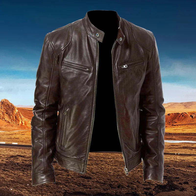 Мужская кожаная куртка с воротником-стойкой, на весну и осень