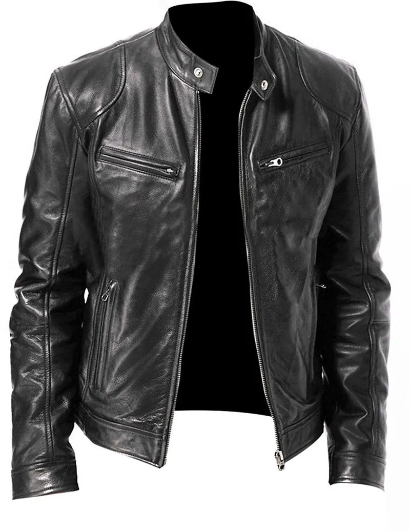 Модная мужская куртка из искусственной кожи, винтажная мотоциклетна...