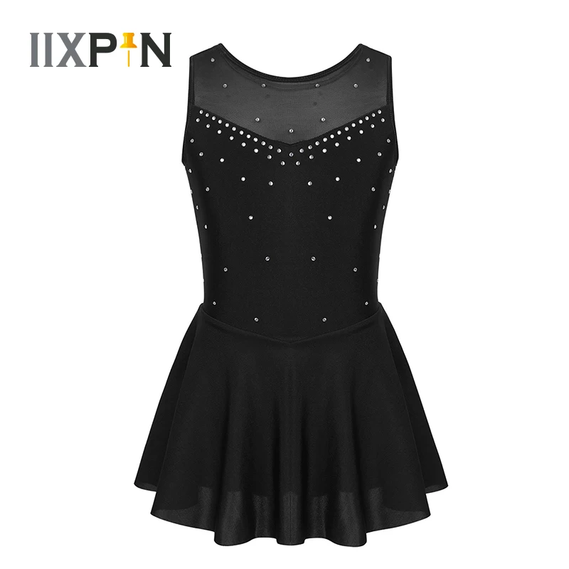 От 6 до 14 лет, детское платье для девочек без рукавов, к требованиям заказчика; Сверкающие стразы Тюль сзади Фигурное катание на коньках для катания на роликовых коньках; Платье для бальных танцев; Платье, гимнастический купальник сценические костюмы для сцены