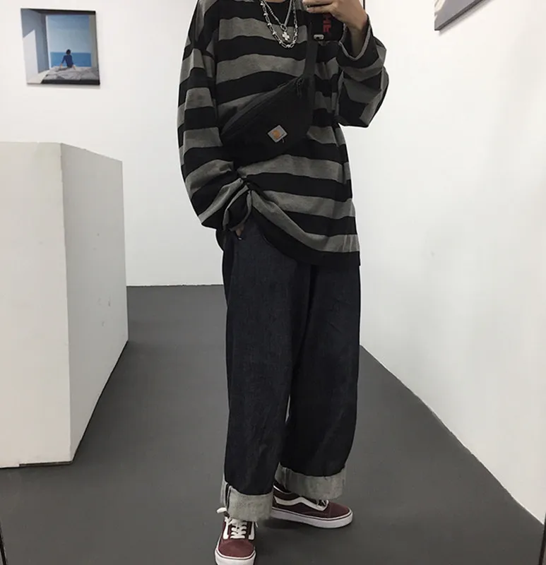 Винтажная универсальная модная футболка в полоску в стиле Харадзюку с длинными рукавами, топы унисекс, японская футболка большого размера, уличная одежда
