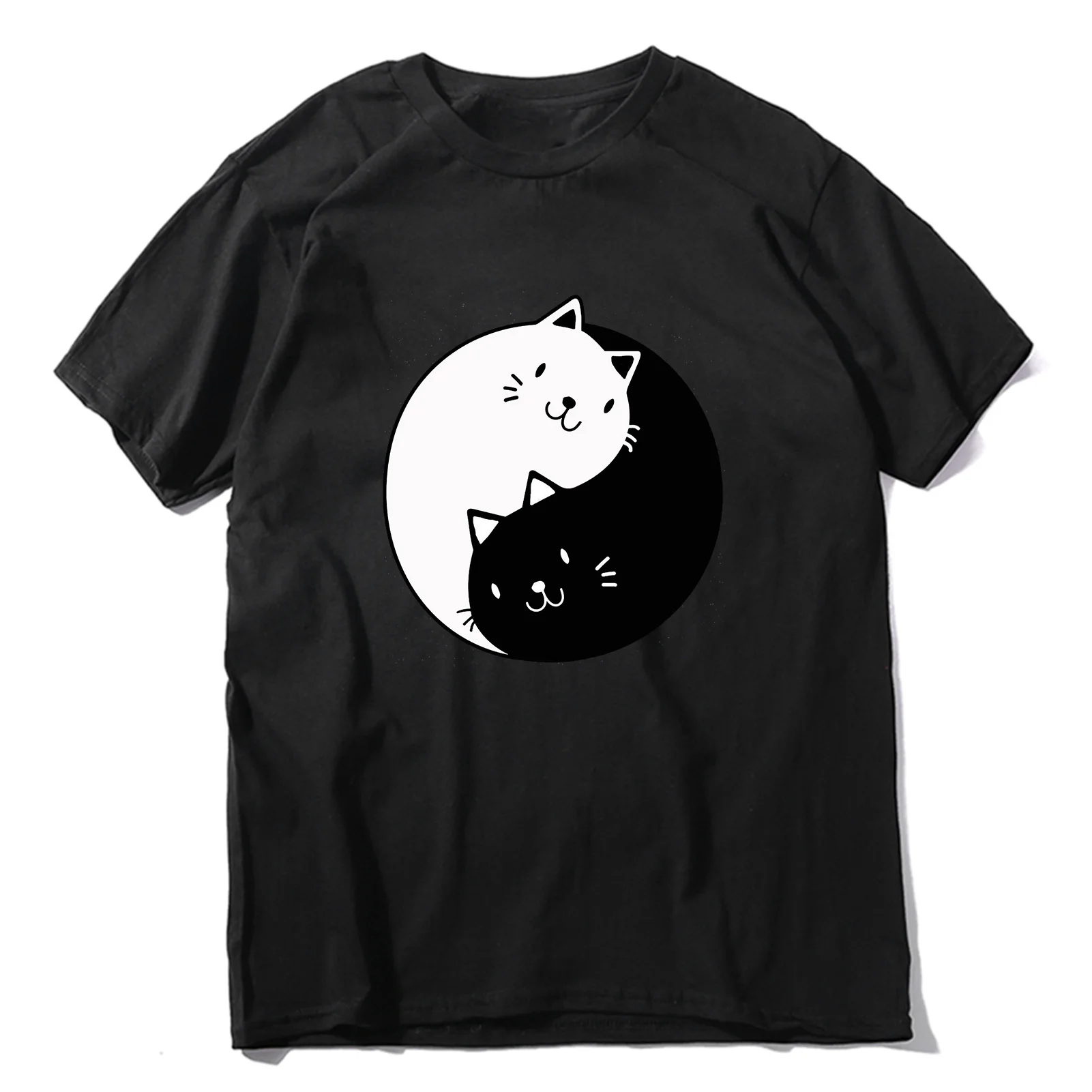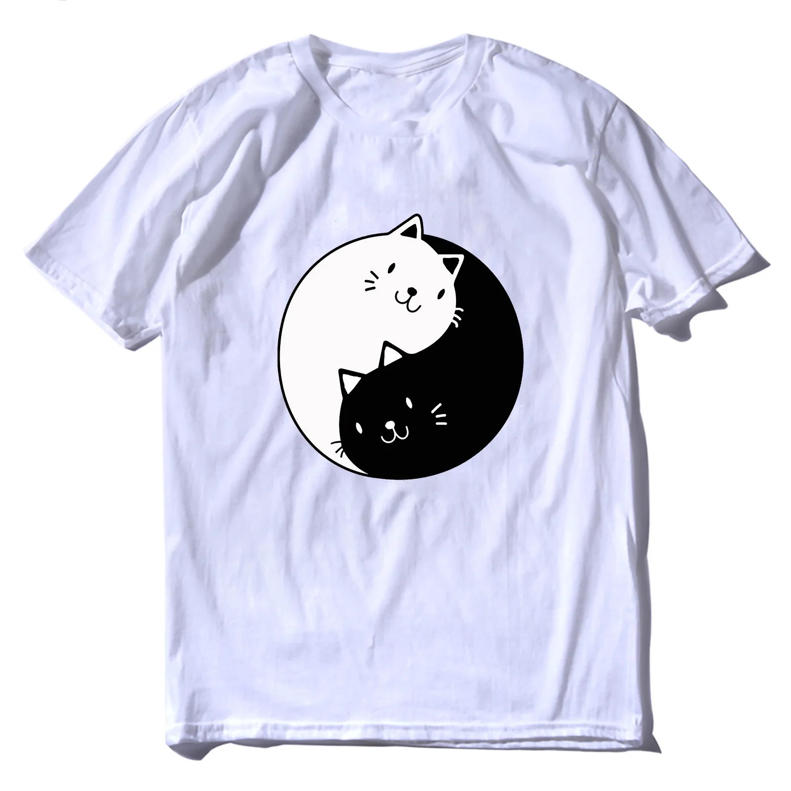 Футболка Taichi Cat Yinyang Kongfu для мужчин и женщин, милая забавная рубашка унисекс из 100% хлопка, свободная уличная одежда в стиле Харадзюку с круглым вырезом, лето