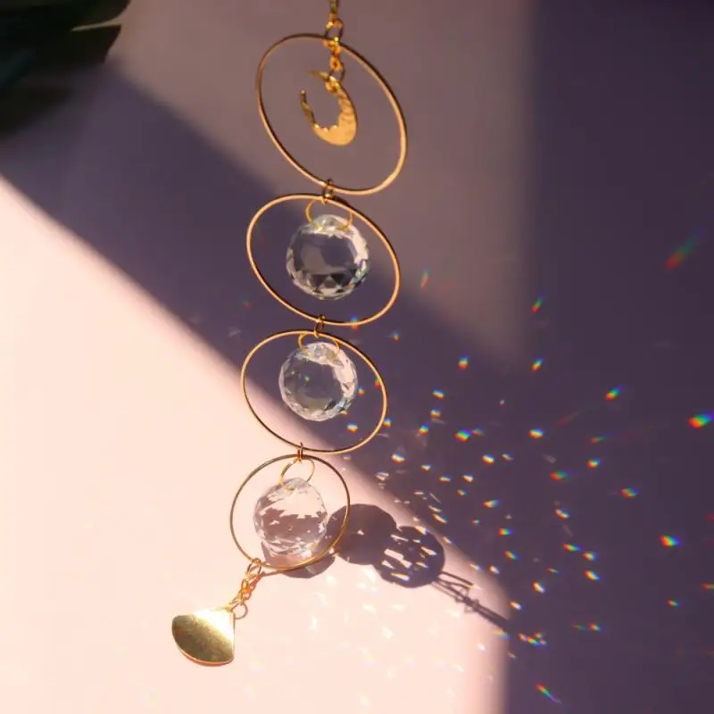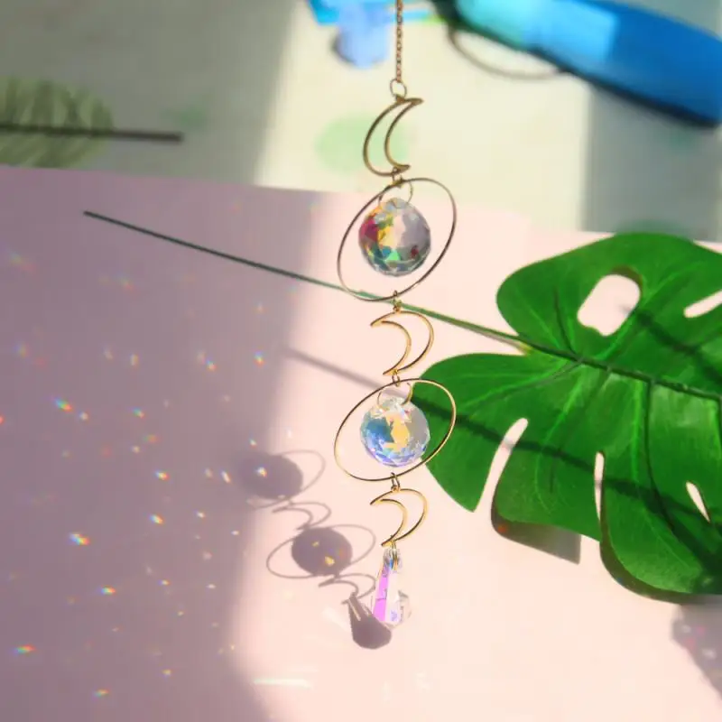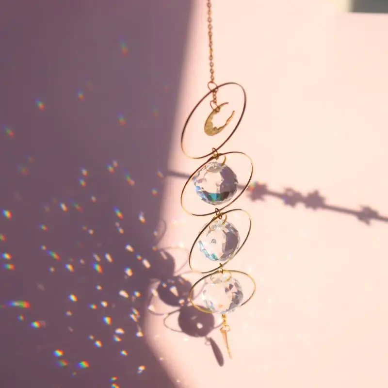 Радужный Хрустальный ветряной замок, подвеска Ловец снов, светильник Аврора, звезда луна, сад, искусственный кристалл, ветряной колокольчик, подарок