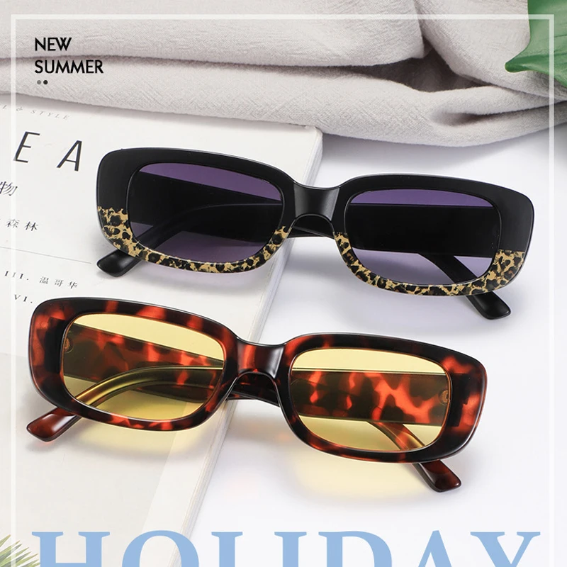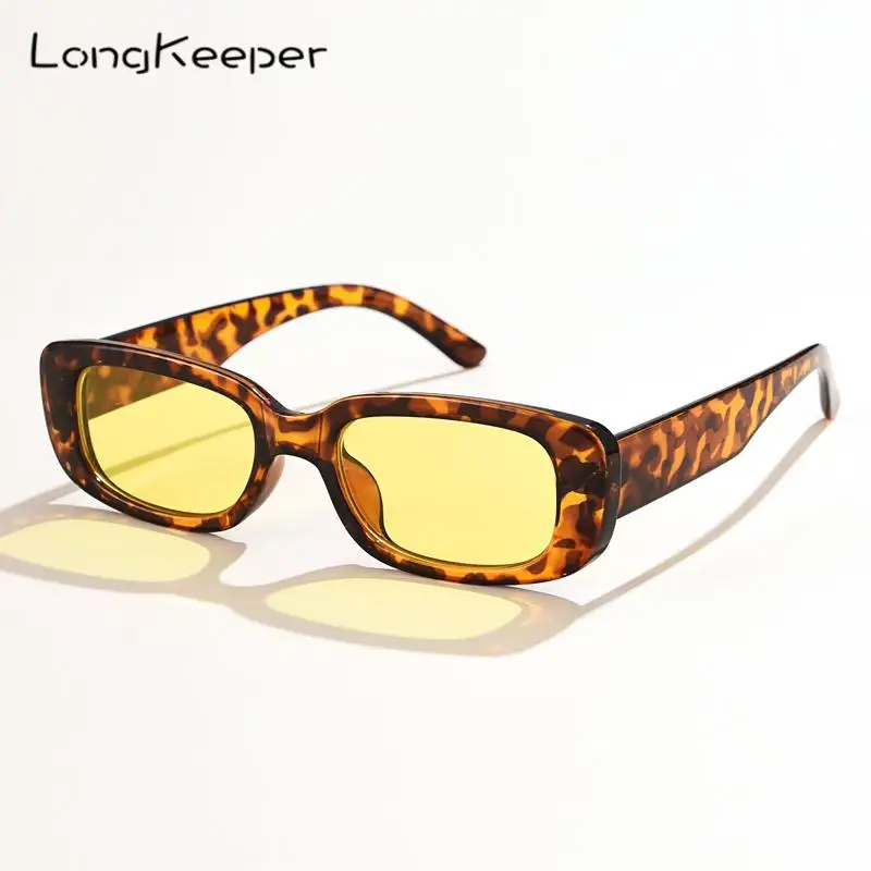 Очки солнцезащитные мужские и женские прямоугольные, модные маленькие солнечные очки в стиле ретро, с леопардовым принтом, желтые Роскошные брендовые винтажные квадратные солнечные очки для путешествий