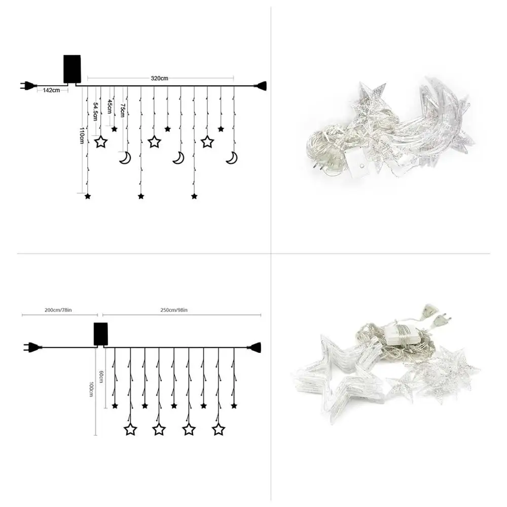 Гирлянда-занавеска в виде луны и звезд, светодиодная гирлянда, рождественское освещение, 2,5 м3,2 м, Сказочная светодиодная гирлянда на новый год, домашнее освещение для декора комнаты