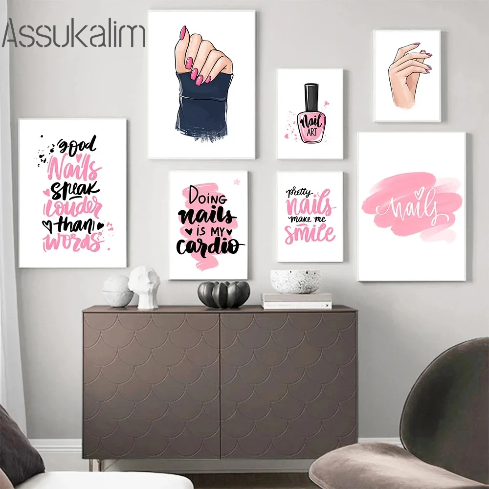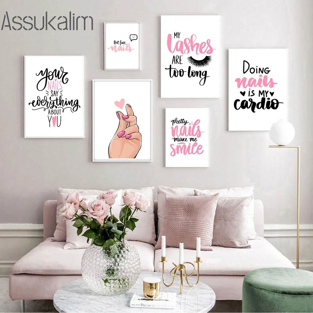 Картины на холсте с лаком и ресницами, розовый постер для ногтей, ц...