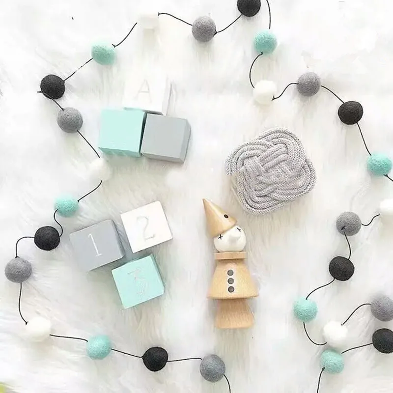 Гирлянда из шерстяного фетра, 2,5 м, с разноцветными помпонами