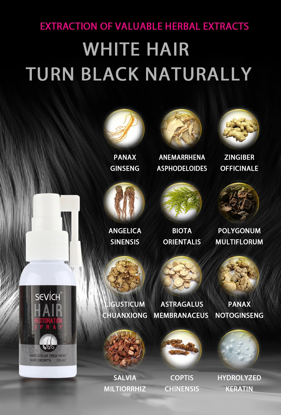 Сыворотка для лечения седых волос Sevich, спрей для роста волос, средство для восстановления черных волос, против выпадения волос, средство для восстановления белых волос