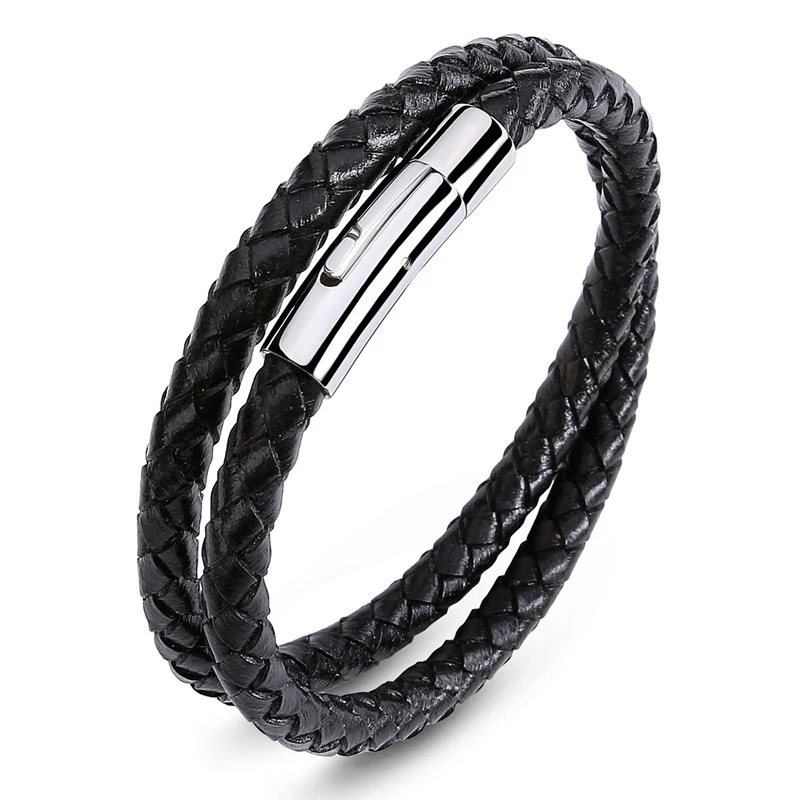 Модный двухслойный плетеный кожаный браслет, мужские и женские ювелирные изделия, кожаные браслеты из нержавеющей стали, повседневный браслет, подарок P623