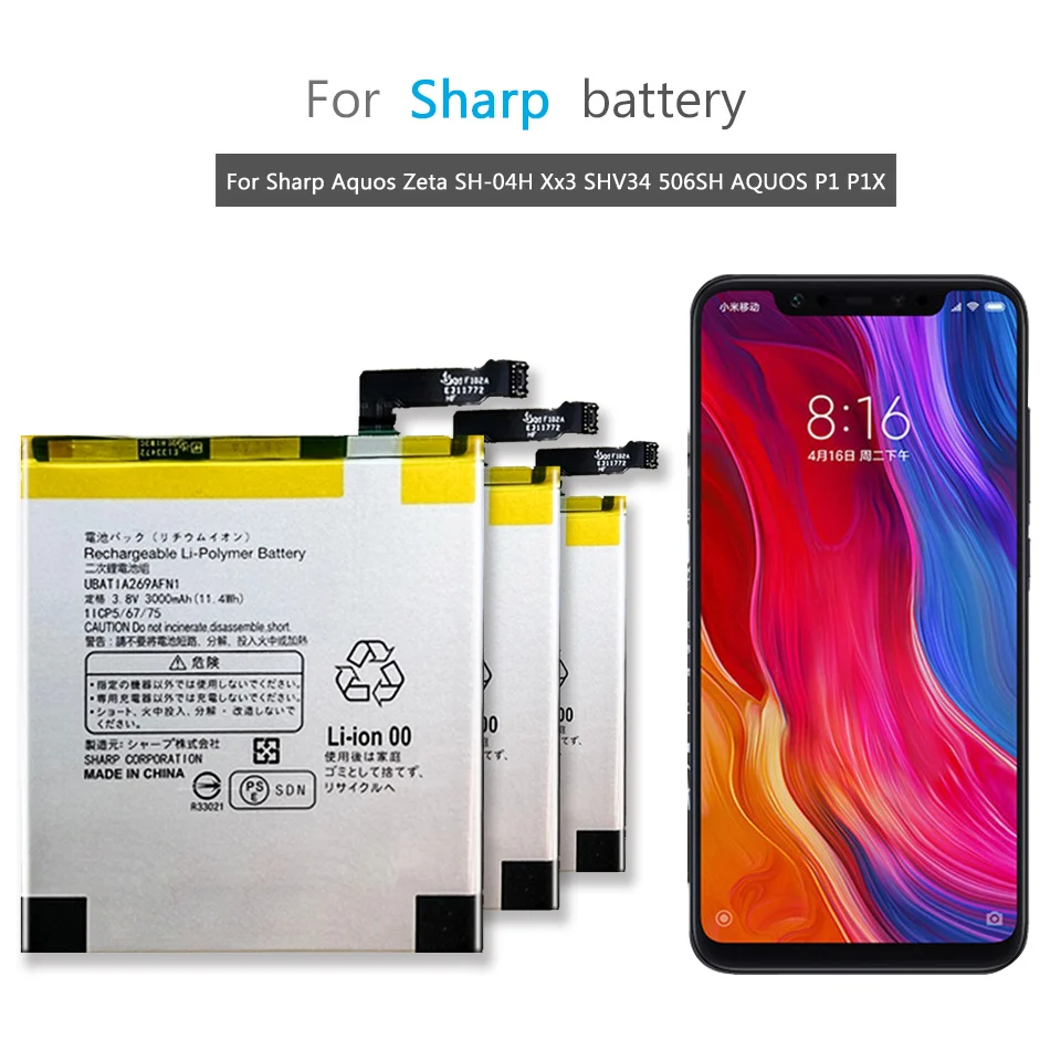 Аккумулятор UBATIA269AFN1, 3000 мА ч, для Sharp Aquos Zeta SH-04H Xx3 SHV34 506SH AQUOS P1 P1X мобильный телефон, литий-ионный