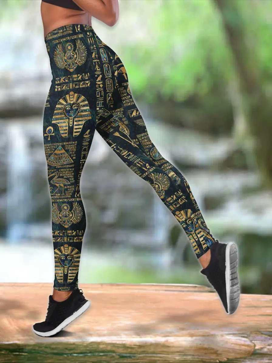 Египетские хироглифы и богатства, набор с 3D рисунком, верх и леггинсы для фитнеса, женские длинные леггинсы, брюки для йоги