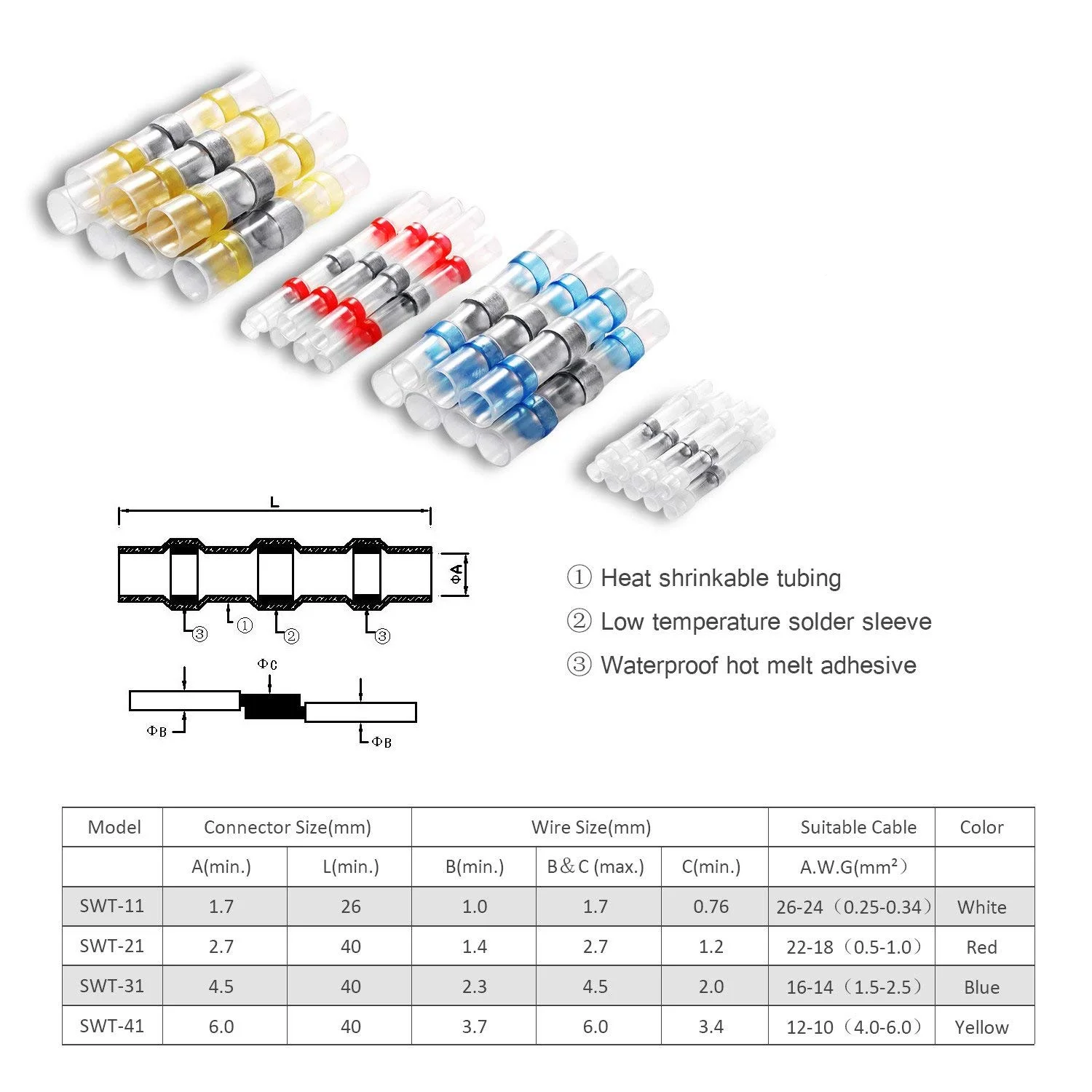 12060 шт провода для пайки Разъемы-Терм усадочная припоя стыковые С...