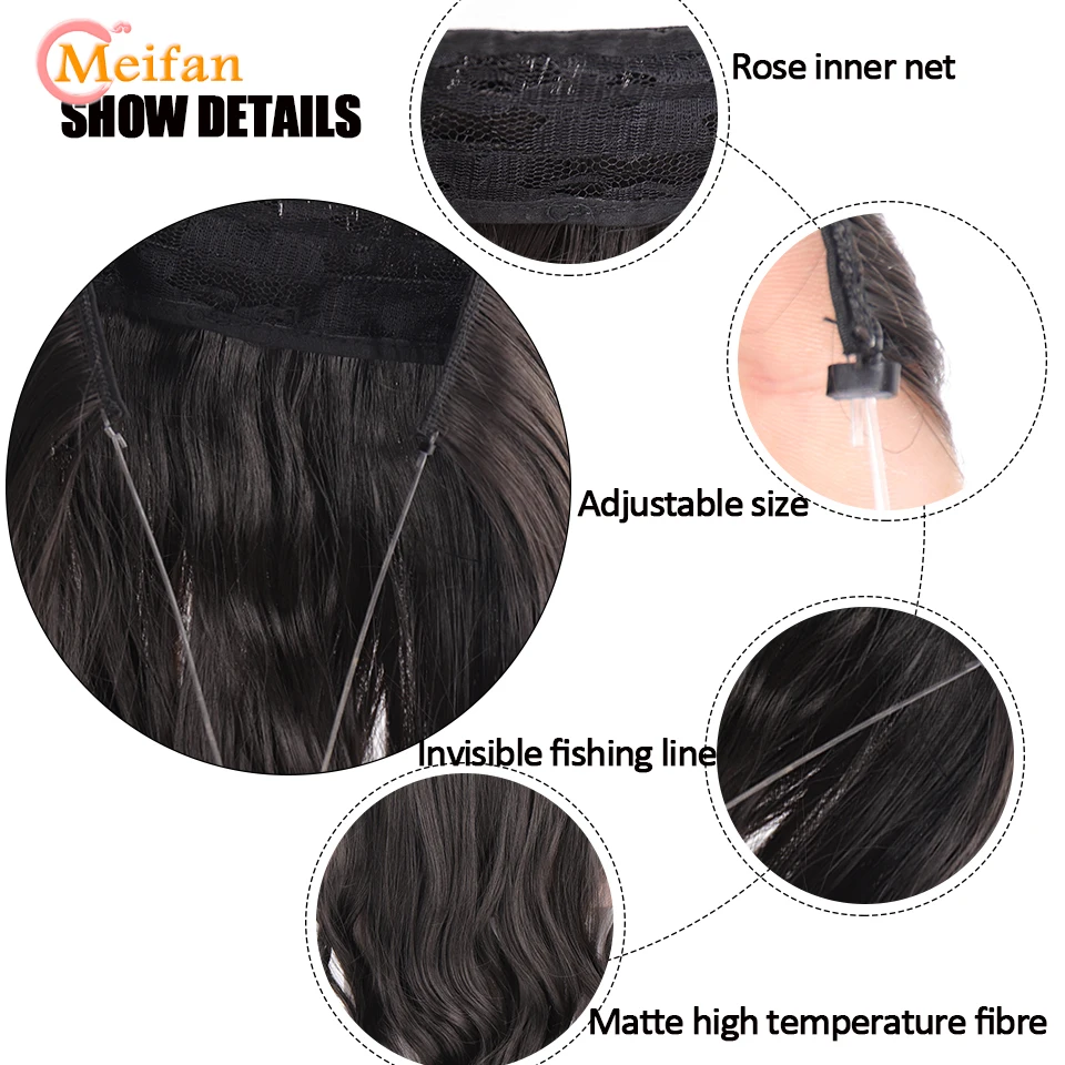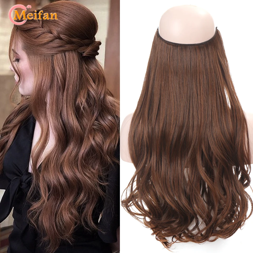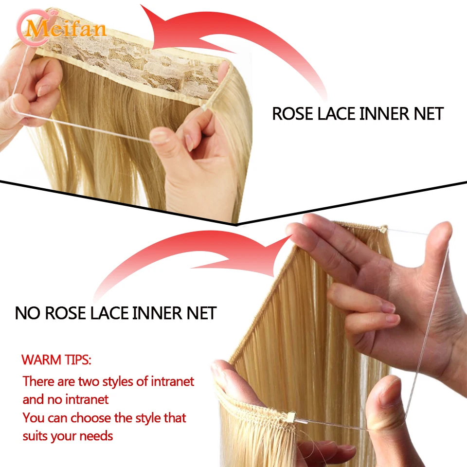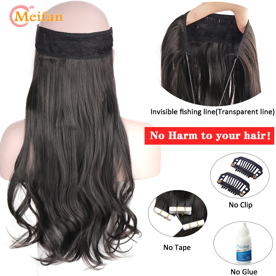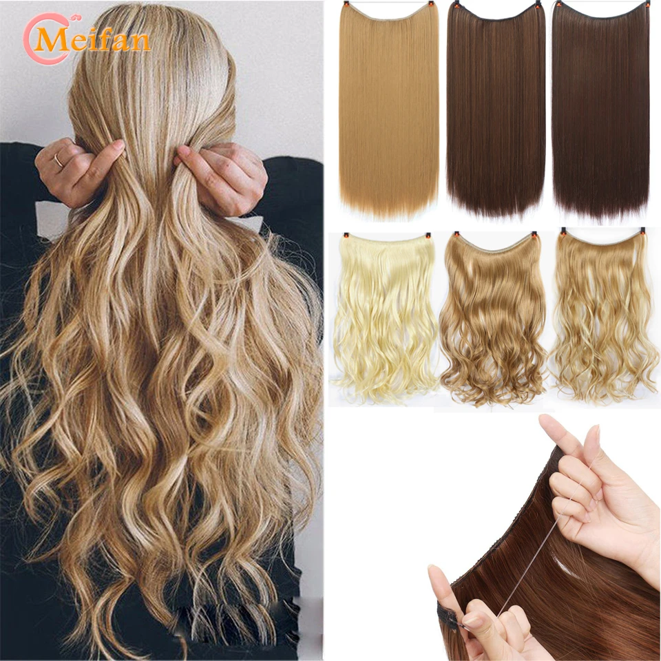 Невидимые рыболовные волосы MEIFAN, цельный удлинитель волос, синтетический натуральный накладной шиньон