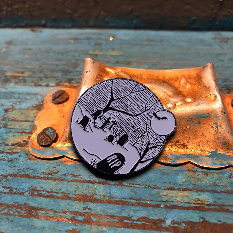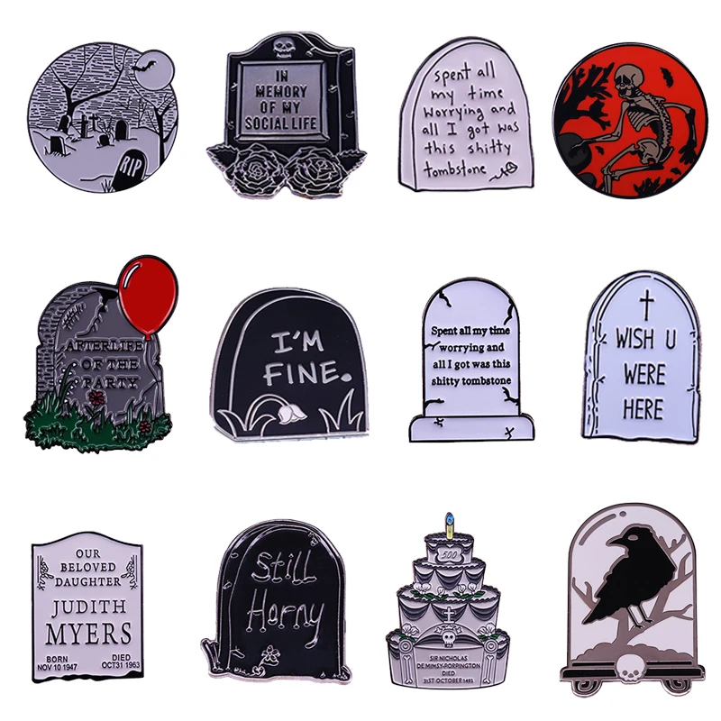 Брошь с надписью надгробие, эмалированная булавка, готический юмор,...