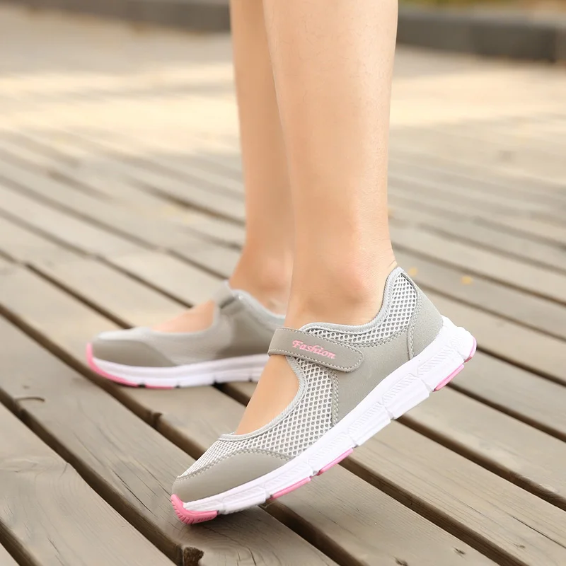 1. Женская обувь; Кроссовки; Сетчатая легкая обувь на плоской подошве.