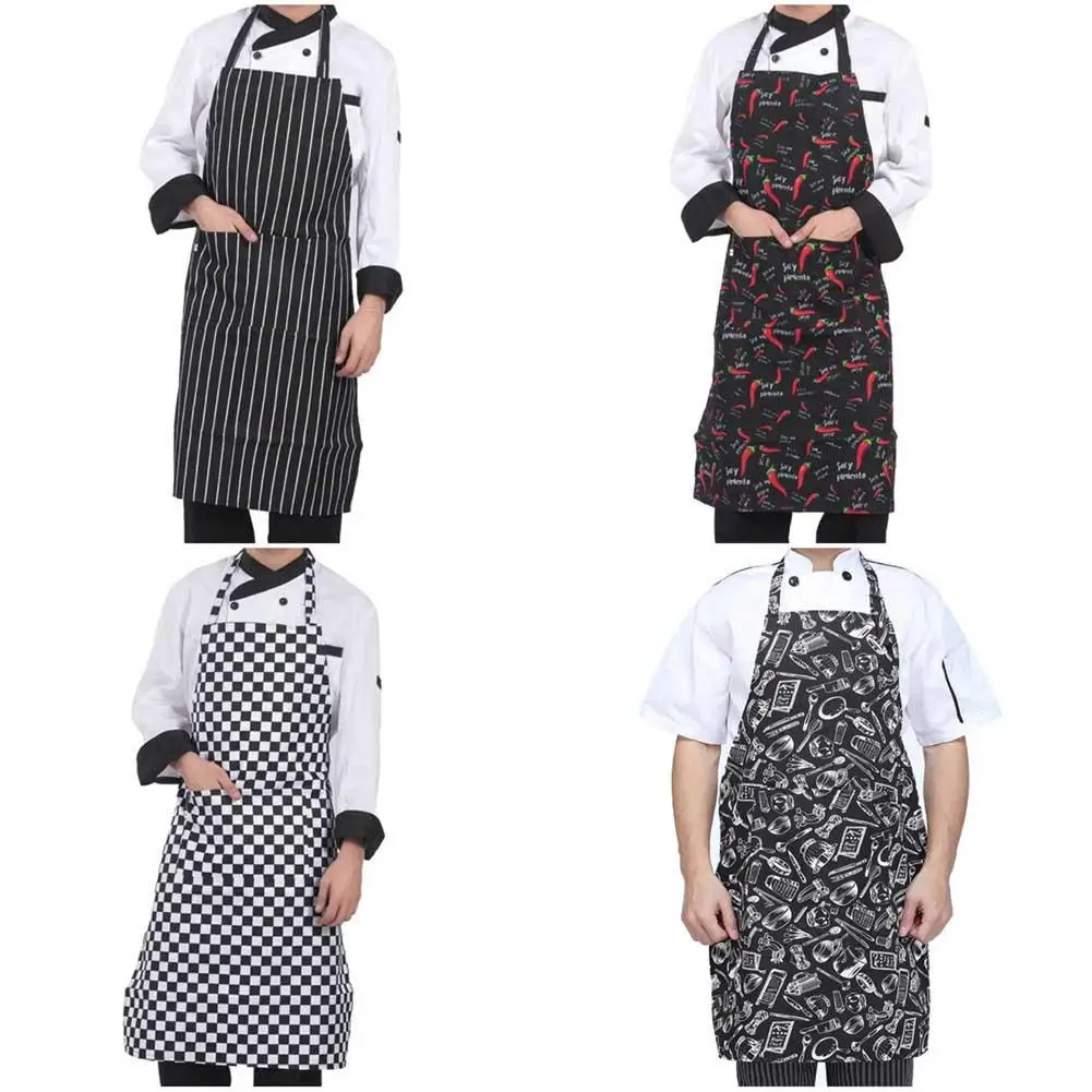 Регулируемый полноразмерный фартук, фартук для взрослых, полосатый, для отеля, ресторана, шеф-повара, Кухонный Фартук с 2 карманами