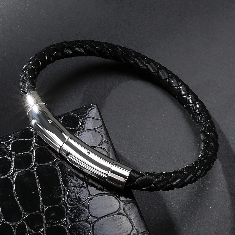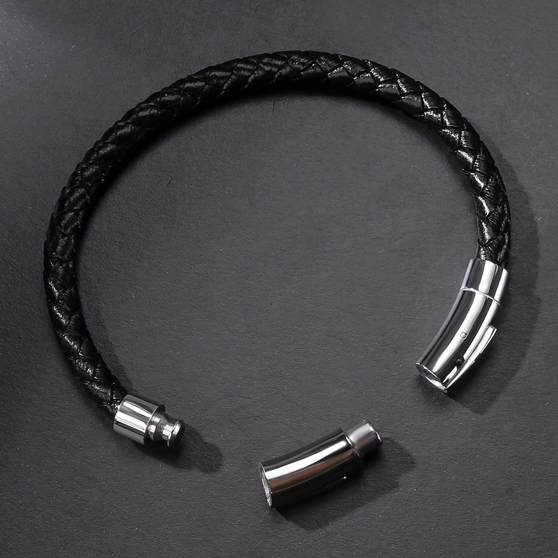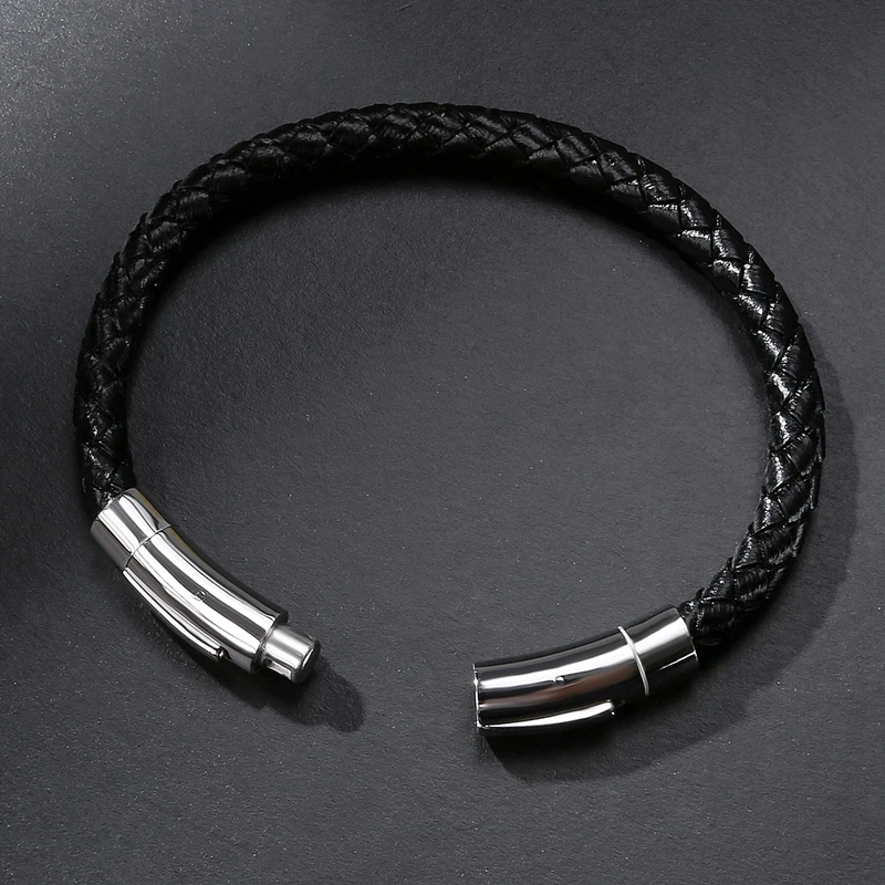 Браслет мужской кожаный плетеный, из нержавеющей стали, магнитный, ...