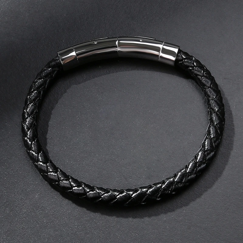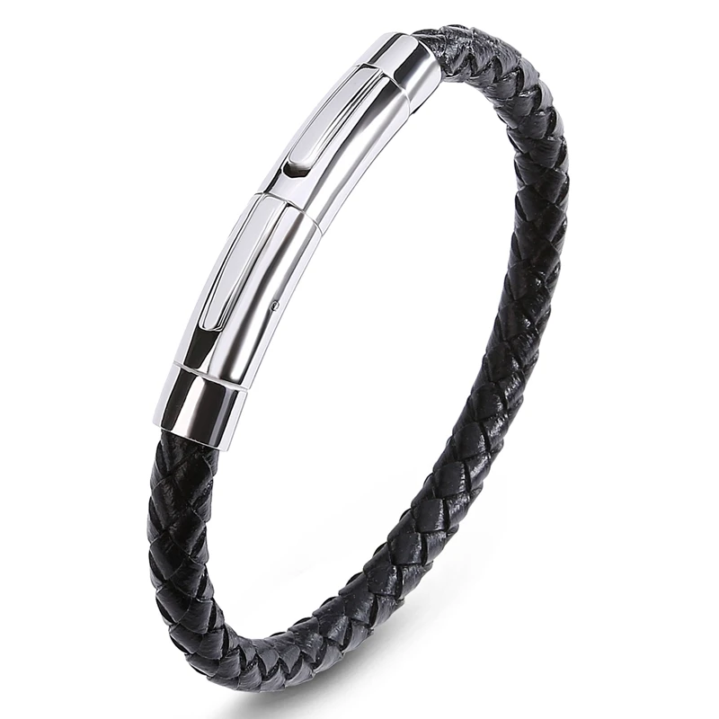 Изысканный плетеный кожаный браслет с защелками из нержавеющей стали для мужчин и женщин, простое вечернее ювелирное изделие, модные плетеные браслеты ручной работы P621
