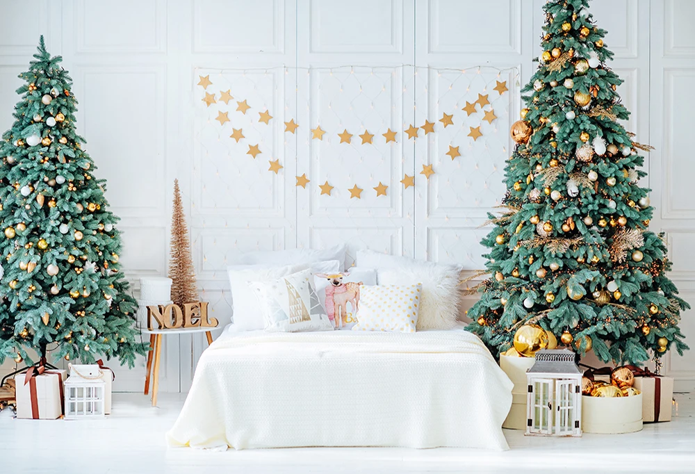 Рождественский фон для фотосъемки с изображением рождественской елки кровати белой деревянной стены Фотофон для фотостудии W-4706
