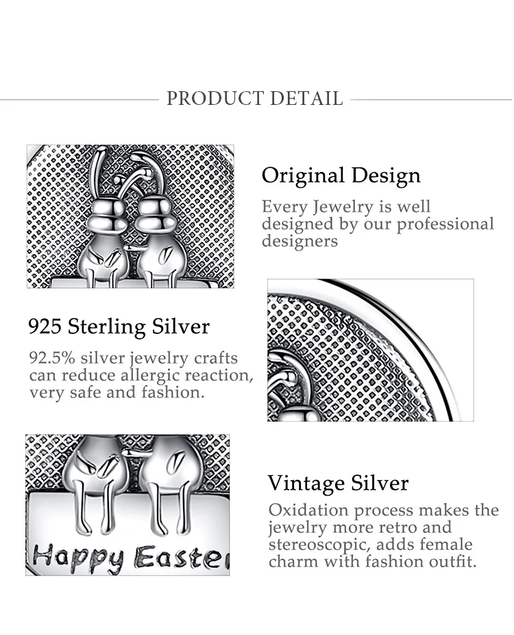 Ожерелье EUDORA женское из серебра 925 пробы, с пасхальным Кроликом, d668