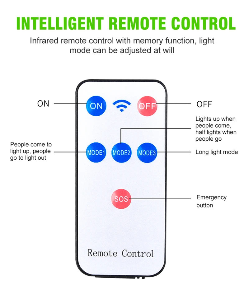 -Автоматическое включение: датчик движения PIR может сканировать источник тепла, который непрерывно перемещается в пределах диапазона обнаружения. Когда кто-то появится в области, светильник автоматически включится.