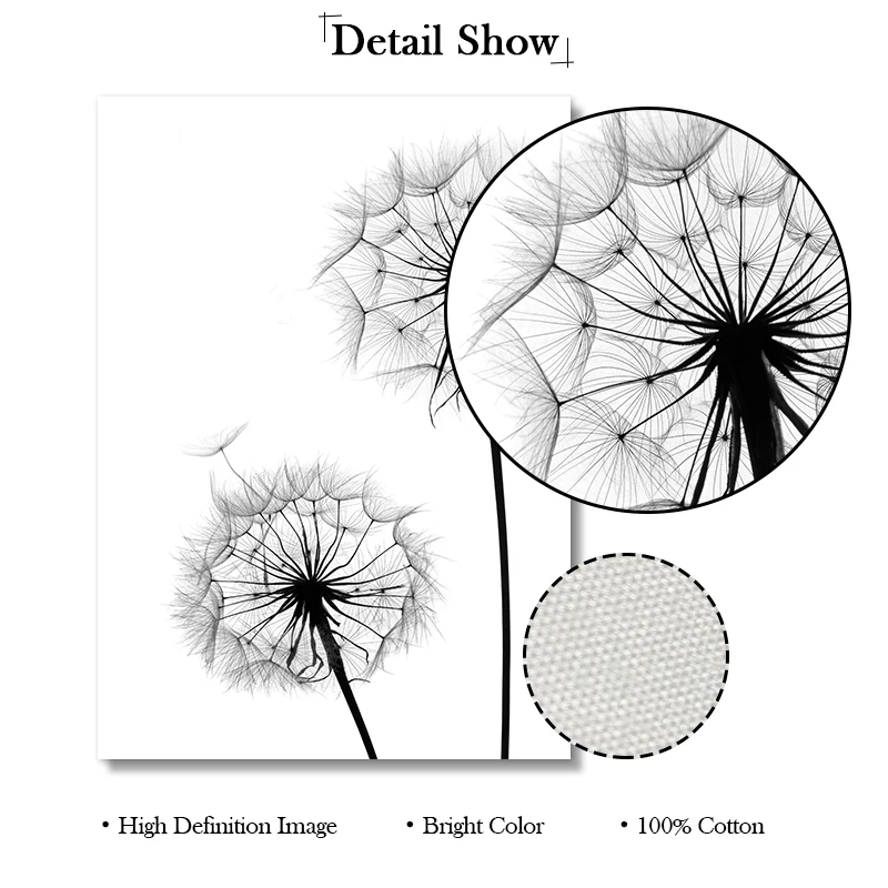 Современная Картина на холсте с изображением одуванчика, черно-белы...