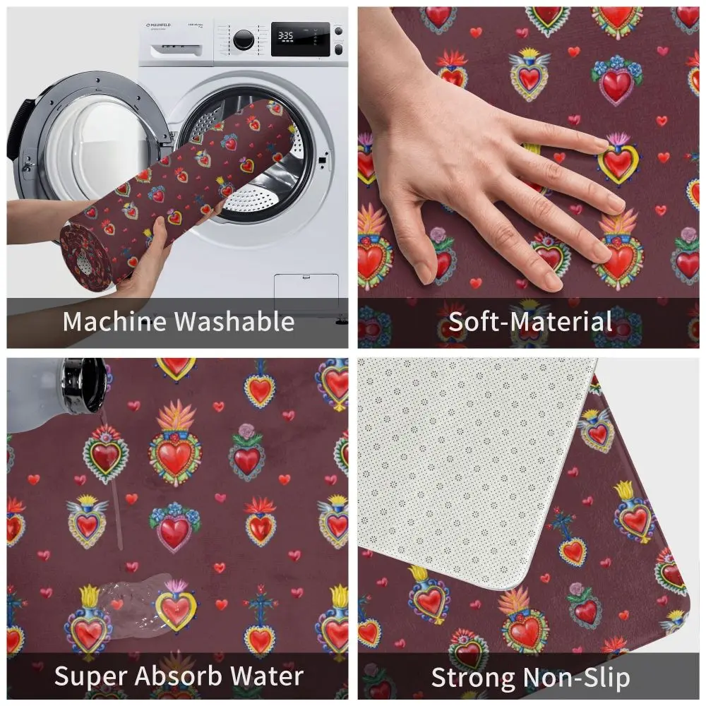 Мексиканский коврик с изображением священных сердец, ковер, коврик, нескользящий напольный декор из полиэстера, для ванной, кухни, балкона, 40*60