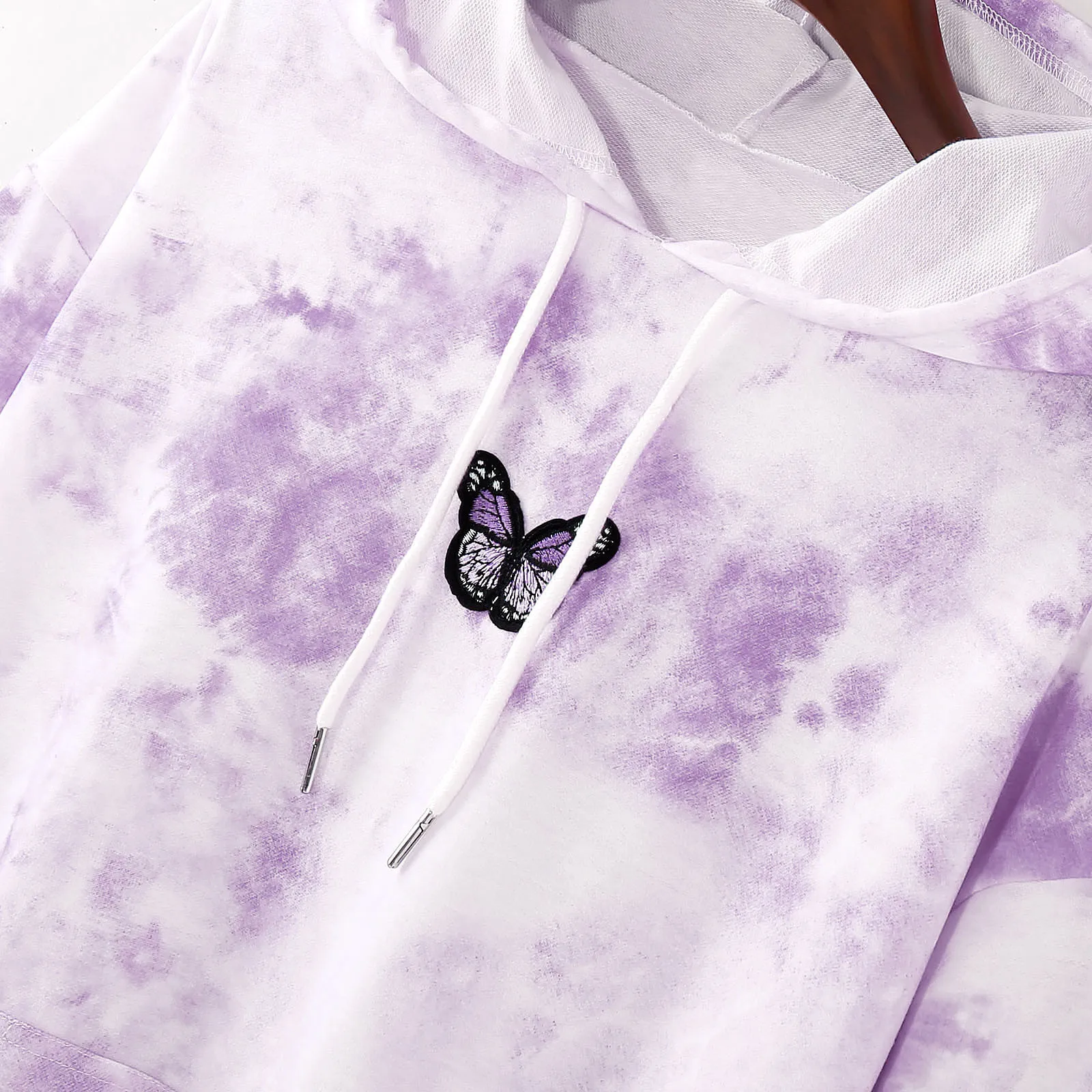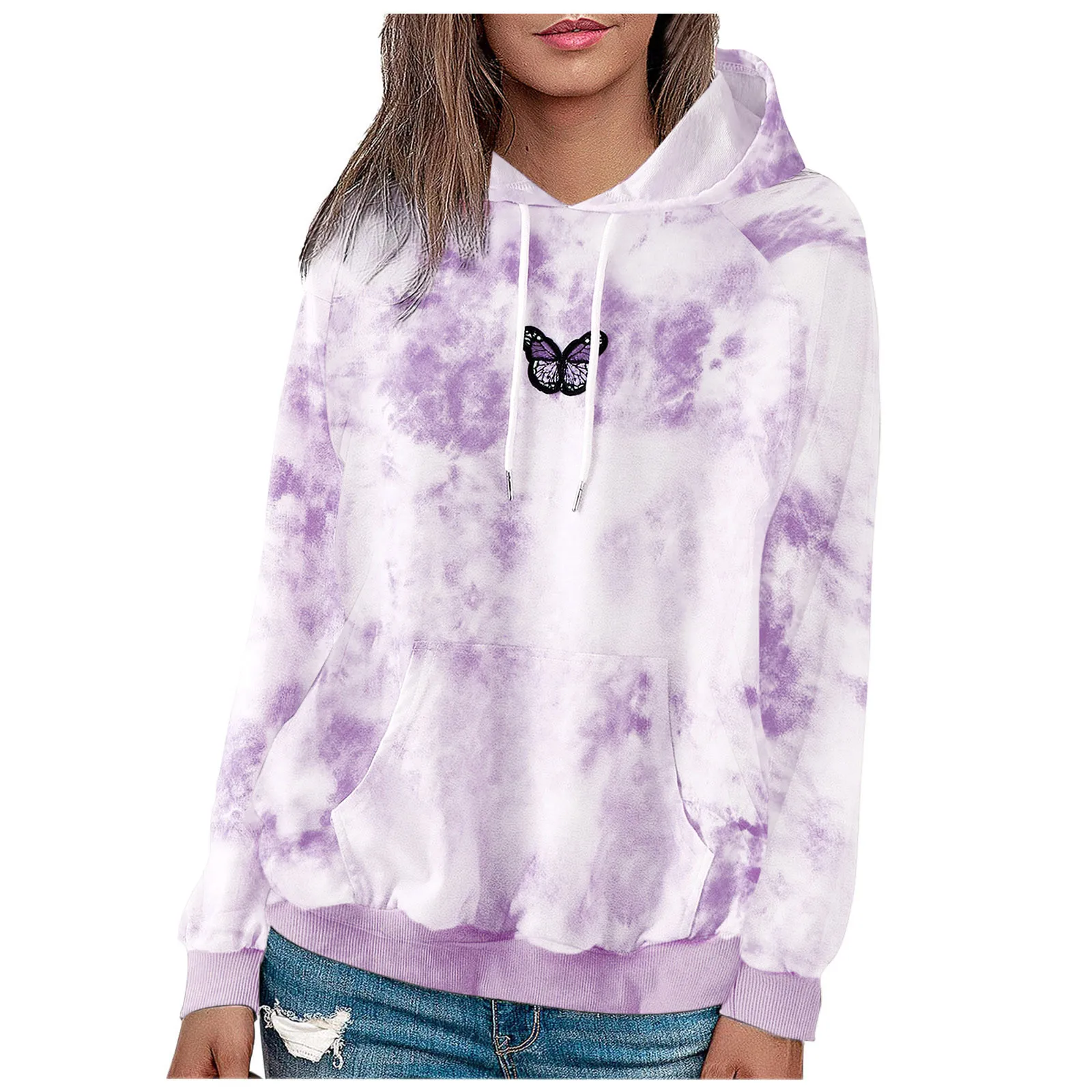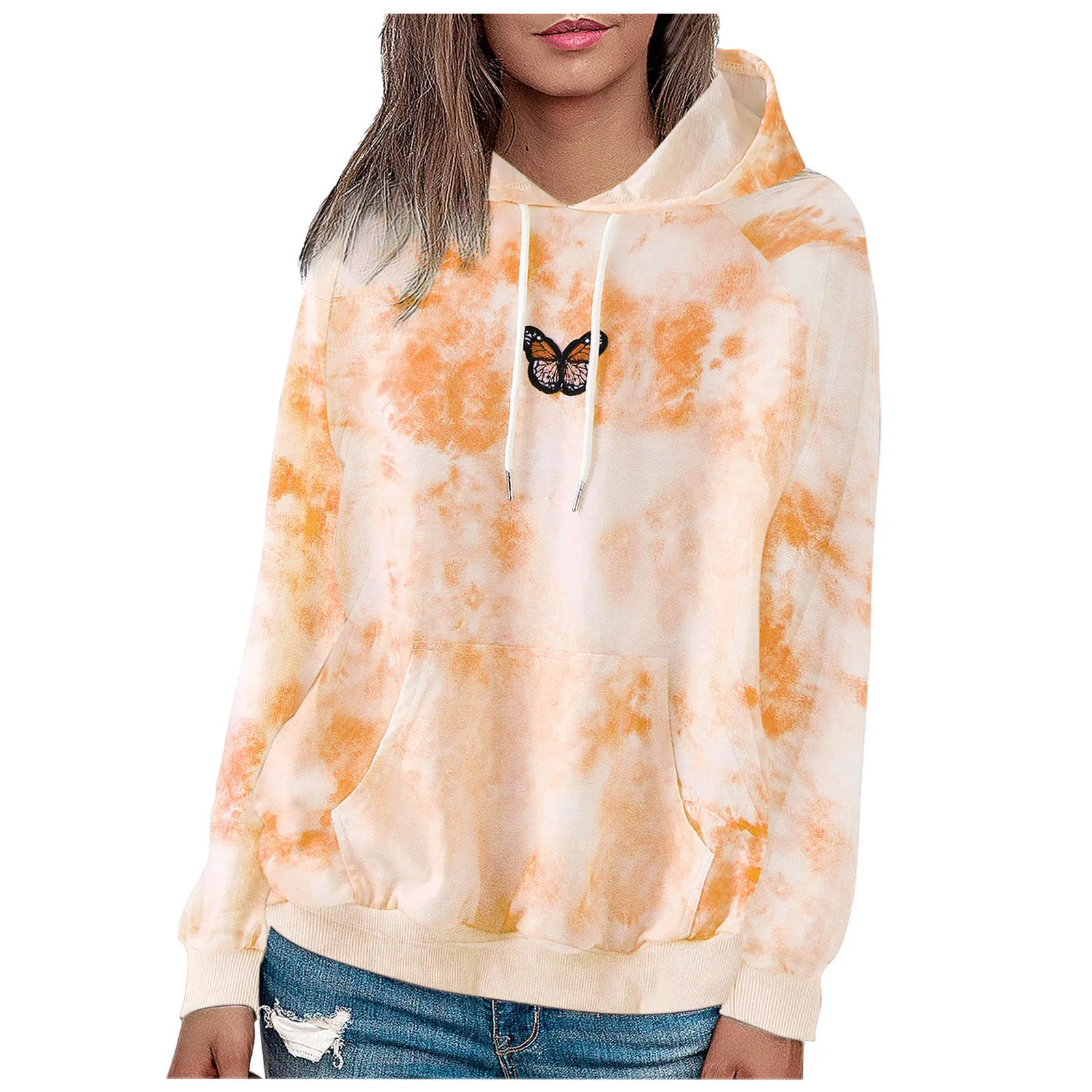 Номер моделиWomen's Casual Tie-Dye Butterfly Printing Long Sleeve Blouse Hooded Sw