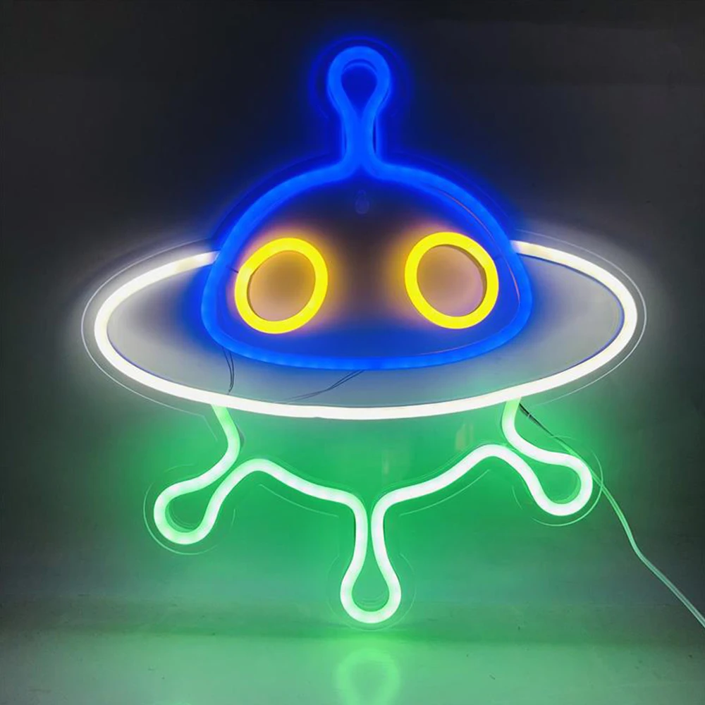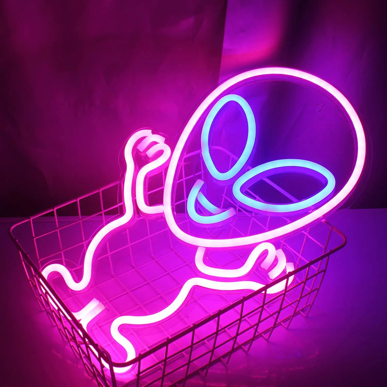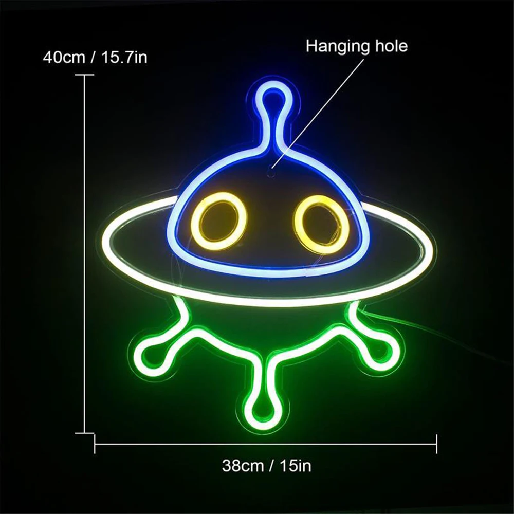 Неоновая вывеска для геймпада, акриловая неоновая лампа в форме инопланетянина, космический корабль, светодиодный ночсветильник, игровая комната вечерние вечеринка, украшение для дома, индивидуальный подарок