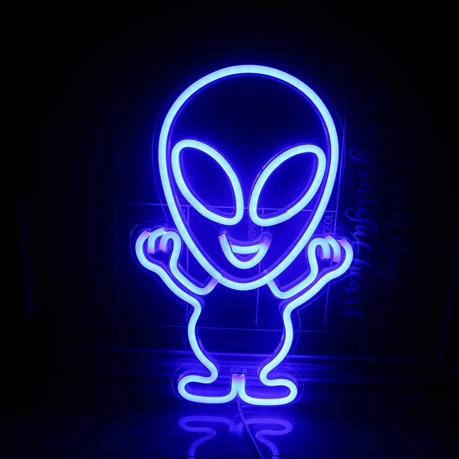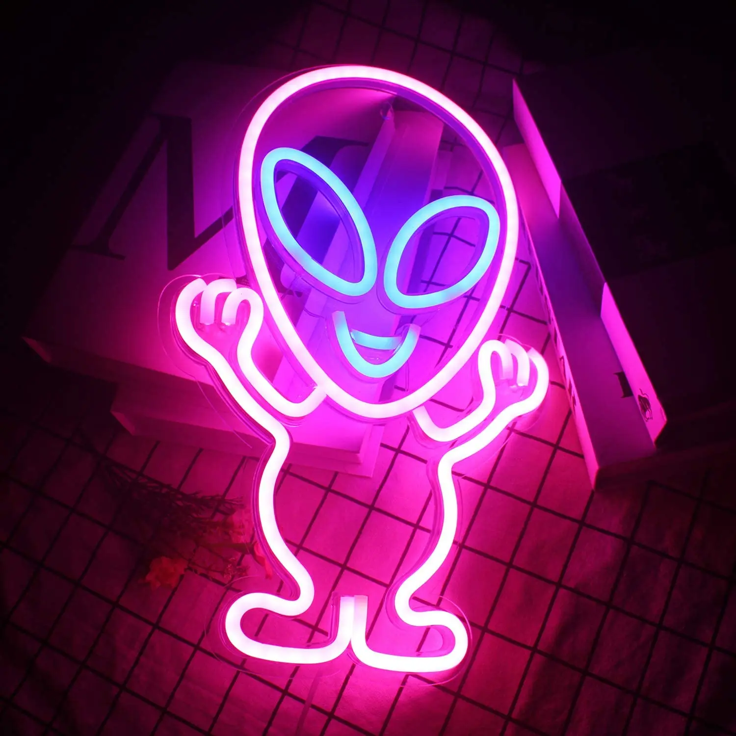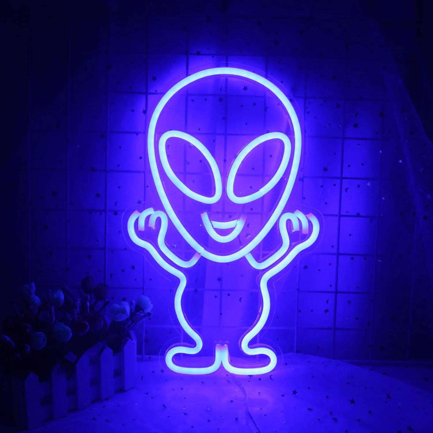 Неоновая вывеска для геймпада, акриловая неоновая лампа в форме инопланетянина, космический корабль, светодиодный ночсветильник, игровая комната вечерние вечеринка, украшение для дома, индивидуальный подарок