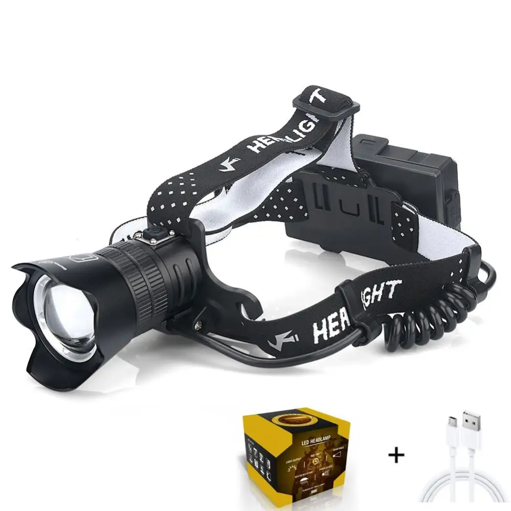 Светодиодный налобный фонарь XHP90.2, телескопический, с USB-разъемом