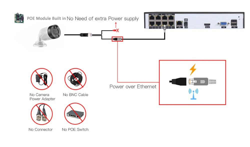 Версия Камеры POE 48V: 802.3af стандартный PoE модуль Встроенный, он может работать с 48 в PoE инжектор или 48 В POE NVR, 802.3af стандарт, если у вас нет 48 в PoE инжектор или 48 В POE NVR, вы можете использовать 12В 1A/2A адаптер питания (не прилагаются) работать с POE Камера