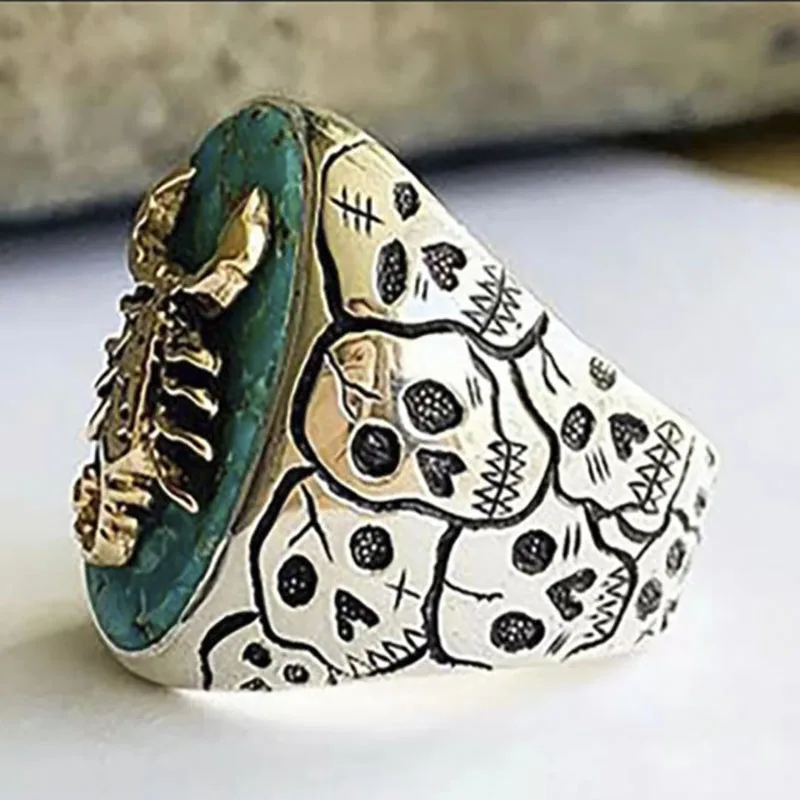 Богемное Винтажное кольцо с каменной мозаикой, резная полоса, Череп, Скорпион, животное, большой овальный старинный Национальный костяшек, женское, мужское кольцо, ювелирные изделия