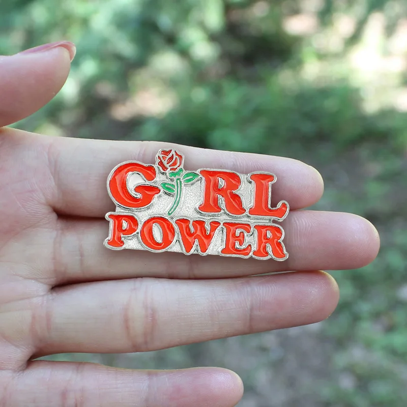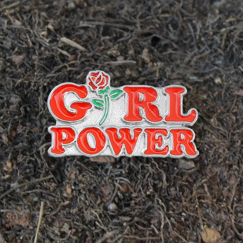 Брошь с надписью Girl Power Rose, дизайнерская брошь для джинсовой куртки, значок на воротник, зажим, эмалированная этикетка, булавки, аксессуары для одежды