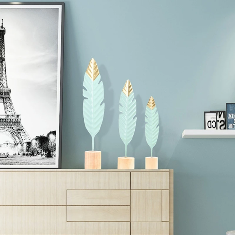Креативные украшения из кованого железа с перьями для спальни, металлические украшения для украшения дома, гостиной, подарочные украшения
