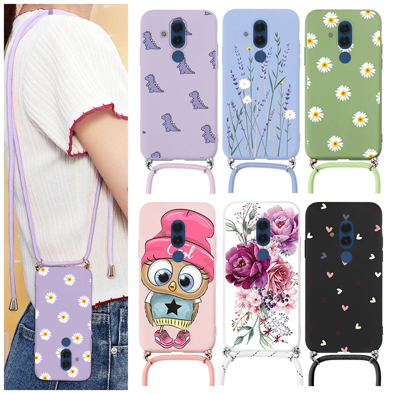 Для Huawei Mate 20 Lite цепочка ожерелье ремешок шнур ремешок силиконовый чехол для Huawei Mate20Lite Mate20 Lite цветы бампер оболочка