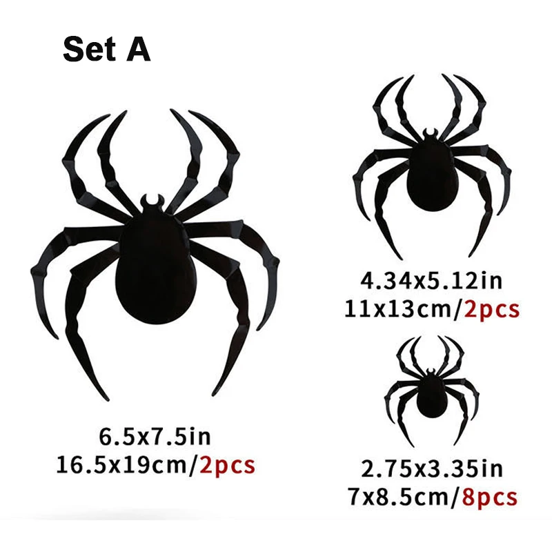 12 шт.компл. Хэллоуин 3D черный паук фотоэлемент своими руками страшный паук на Хэллоуин съемные наклейки