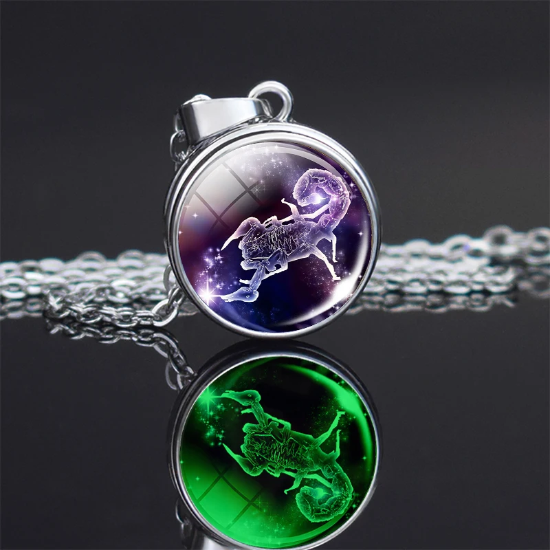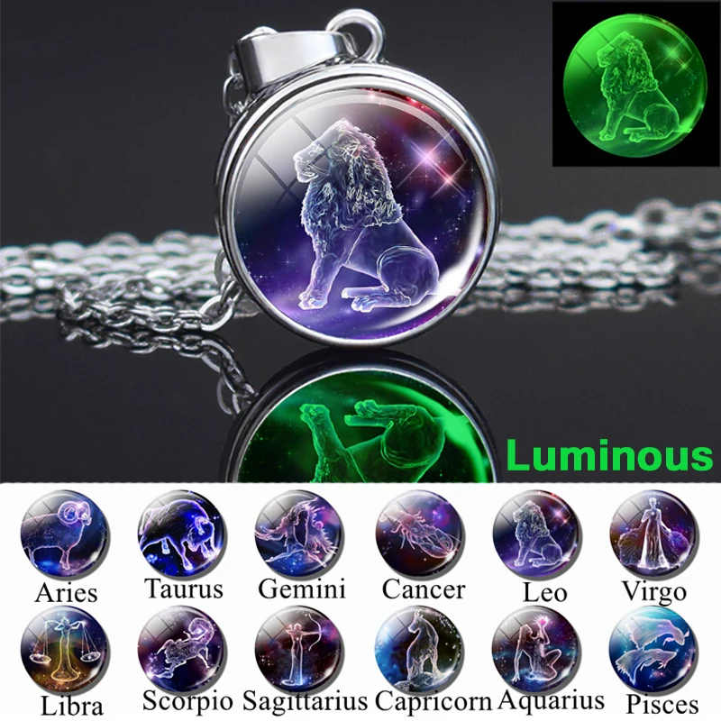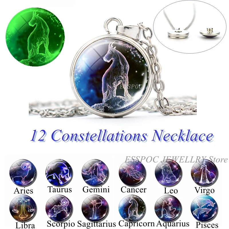 1 шт. светящееся ожерелье с 12 символами созвездия и пуговицами, Модная бижутерия со стеклянными кабошонами, подарок на день рождения