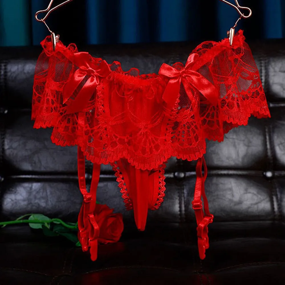 Трусы-стринги мужские кружевные с бантом, нижнее белье с открытой спиной, с поясом для чулок, Трусы-стринги
