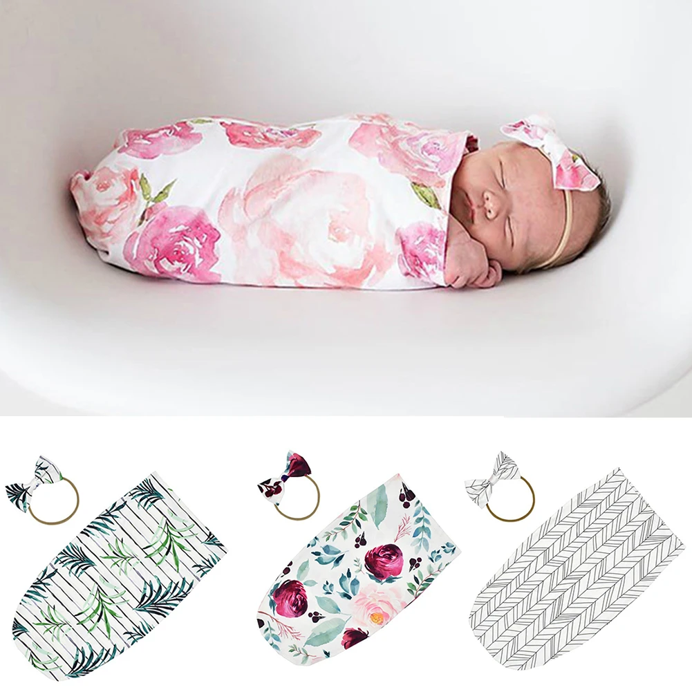 Повязка на голову с бантом для мальчиков и девочек, мягкий эластичный мешок для сна для новорожденных от 0 до 2 месяцев, пеленка, спальный мешок для младенцев