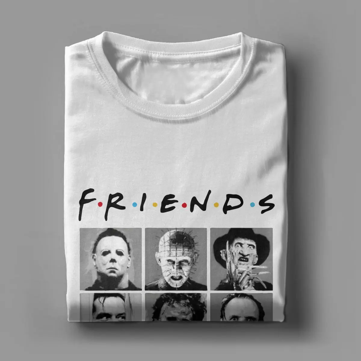 Мужские футболки, забавная футболка из чистого хлопка с ужасами и друзьями, футболка с коротким рукавом для Хэллоуина, футболка Джейсона вурхиса, топы, идея подарка