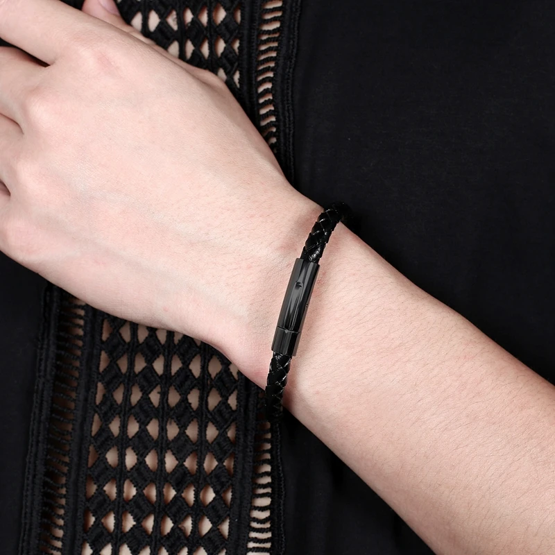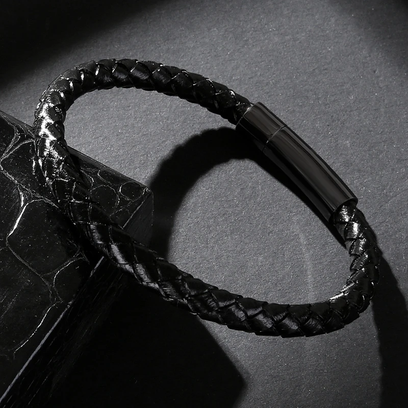 Простой плетеный браслет из натуральной кожи для мужчин и женщин, браслеты ручной работы из нержавеющей стали, Модный повседневный вечерние на запястье, праздничный подарок P601