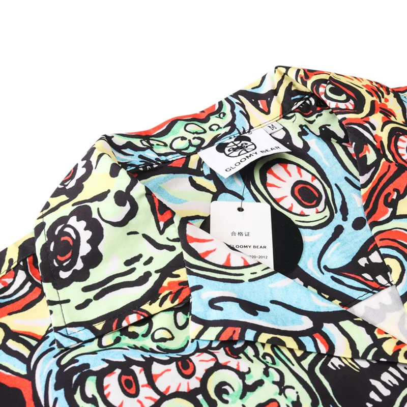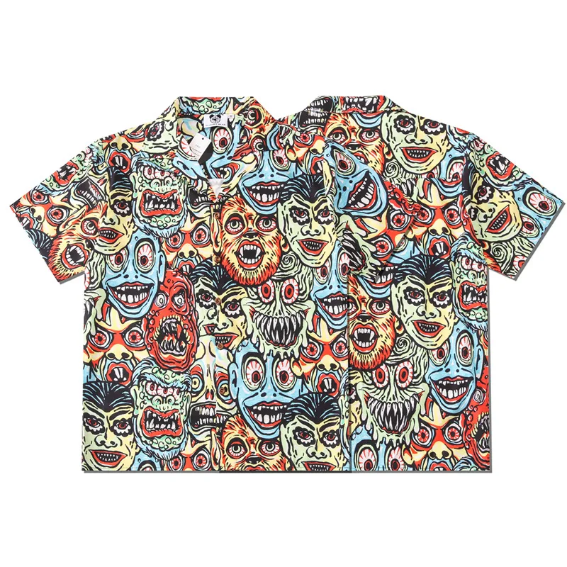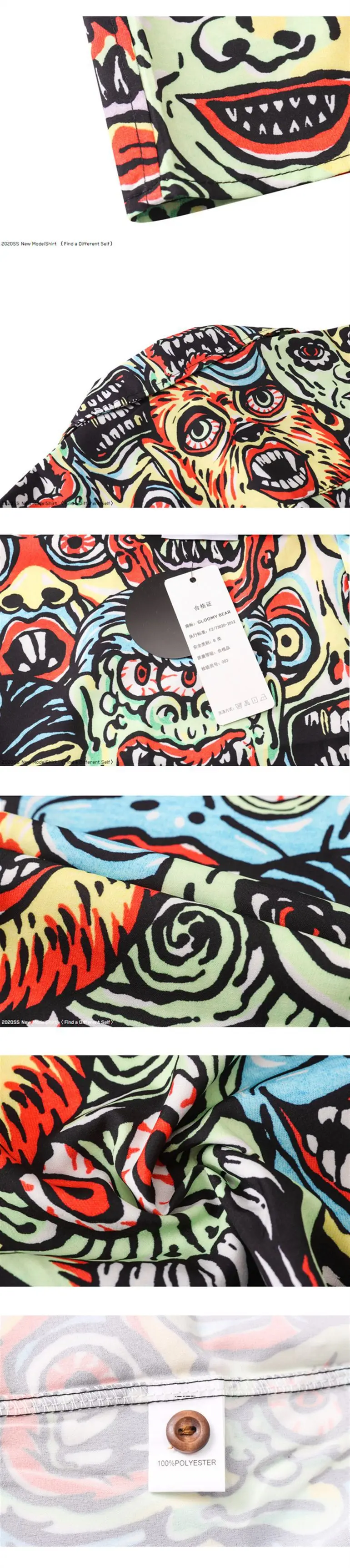 Рубашка мужская с принтом зомби, модная сорочка с коротким рукавом, крутая тонкая свободная Пляжная В гавайском стиле, с лацканами, в стиле Харадзюку, лето 2021