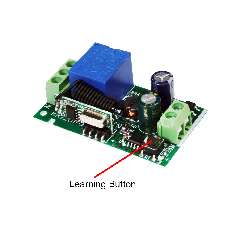 Нажмите кнопку обучения на приемнике один раз, он приходит в мгновенный режим настройки.