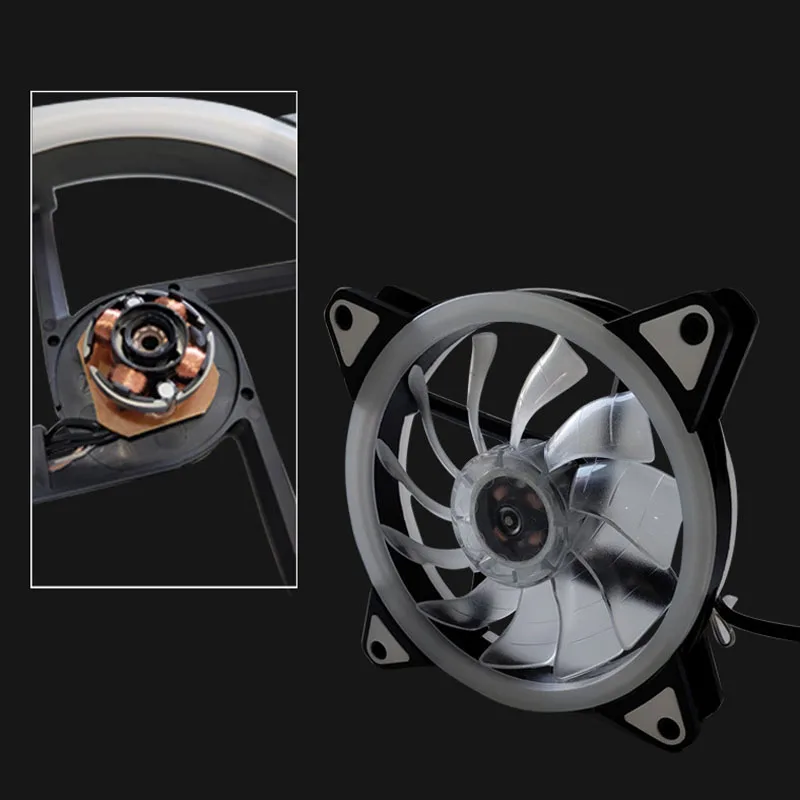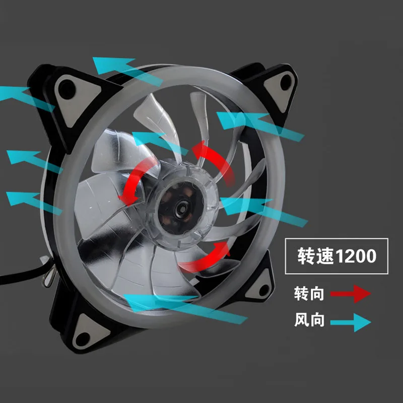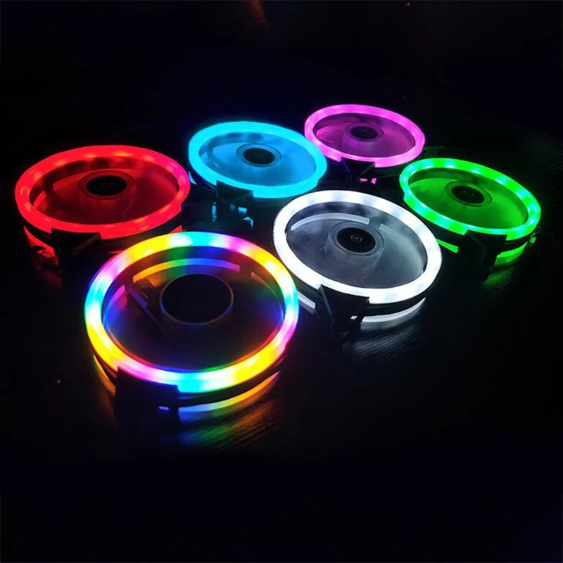Вентилятор для чехла компьютера 12 см, бесшумная светодиодная цветная лампа, тихий резиновый антивибрационный охлаждающий вентилятор с RGB-подсветкой