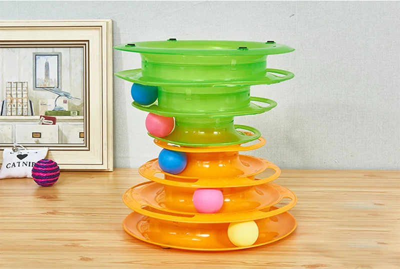 Трехуровневая игрушка для кошек с цветными шариками, игрушка для до...