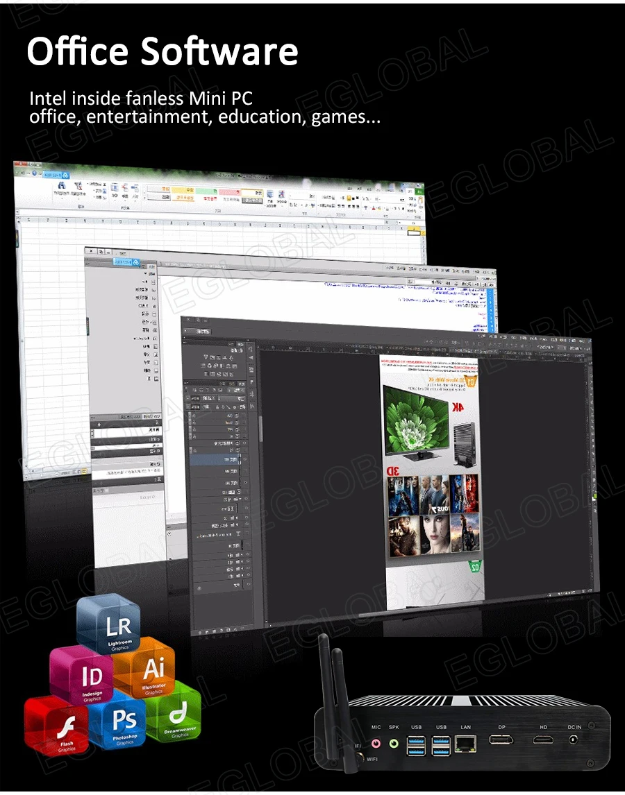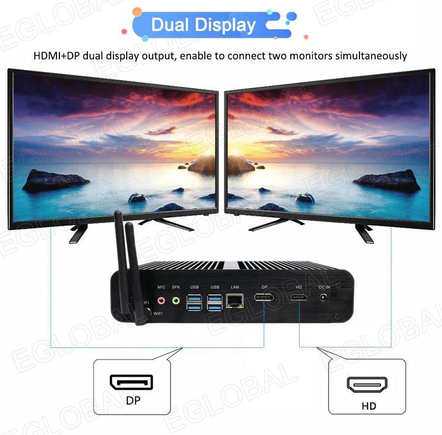-Поддержка DP + HDMI Двойной выход дисплея синхронно, 4K HD плеер