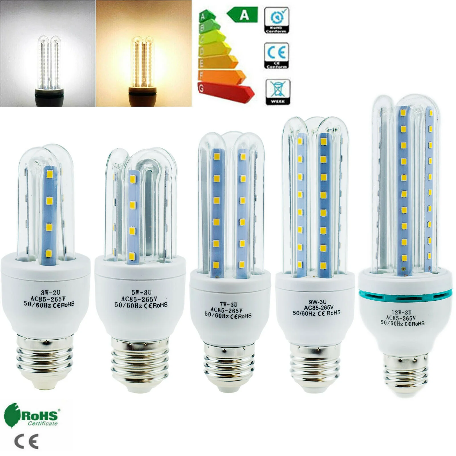 Светодиодный ная энергосберегающая лампа E27 12 Вт 9 Вт 7 Вт 5 Вт 3 Вт SMD 2835 свет белый домашний светильник Холодный/теплый белый 85-265 вХарактеристики:Модель: U-образные светодиодные лампы E27Светодиодный светодиода SMD: SMD 2835Тип цоколя: E27Мощность: 3 Вт/5 Вт/7 Вт/9 Вт/12 ВтУгол свечения: освещение на 360 градусовВходное напряжение: 85-265 В переменного токаМатериал корпуса: пластик + стеклоМатериал корпуса: алюминиевый сплавСтандарт безопасности: CE,ROHS,FCРабочая температура: <65 °CЦветовая светодиодный да: Холодный белый: 6000-6500 К, теплый белый: 2800-3200 кСрок службы: более 50000 часовОсобенности:100% новый и высококачественныйНовый технологический дизайн, который снижает энергопотребление до 90% и обеспечивает длительный срок службы.Диапазон рабочего напряжения 86-265 В переменного тока, подходит для глобального напряжения.Идеально подходит для дома, офиса, магазина, ресторана, гостиницы, рынка и других случаев освещения.Светодиодный ные энергосберегающие лампы могут сэкономить до 60% энергии, чем обычные энергосберегающие лампы, и на 90%-лампы накаливания.Посылка:Светодиодный ная лампа
